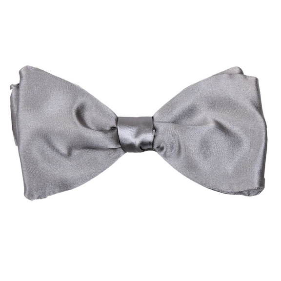 Our Plain Silver Silk Formalwear Bow Tie is made to order in America from 100% silk, and is available as either a self-tied or pre tied bow tie. As these ties are made to your specifications in our factory, returns are generally not accepted. Our standard sized ties usually ship the next day, however, with our other custom options please allow 3-4 weeks for delivery.